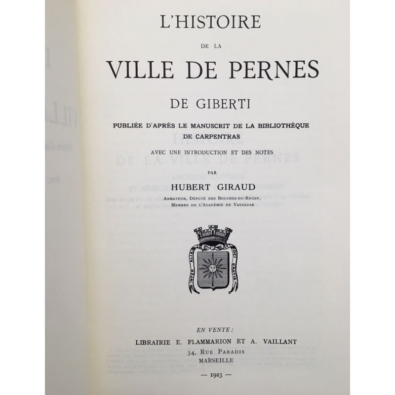 Nom | L' Histoire de la Ville de Pernes ( avec son arbre généalogique dépliant des premiers rois et comtes de Toulouse dans le Comtat Venaissin) |